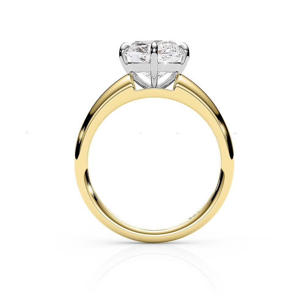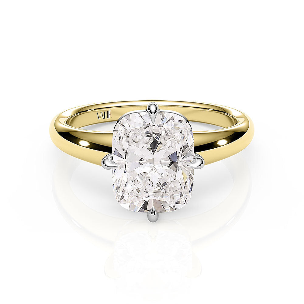 JEMMA | Four Claw Tapered Solitaire Cushion Cut Diamond Ring in Yellow & White Gold