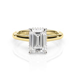 JENNET | Cathedral Hidden Halo Emerald Diamond Ring in Yellow & White Gold