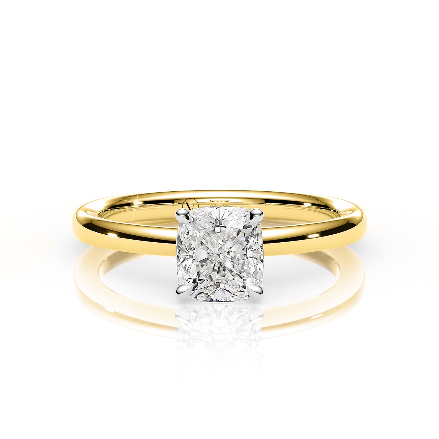 KAYLA | Classic Solitaire Cushion Cut Diamond Ring in Yellow & White Gold