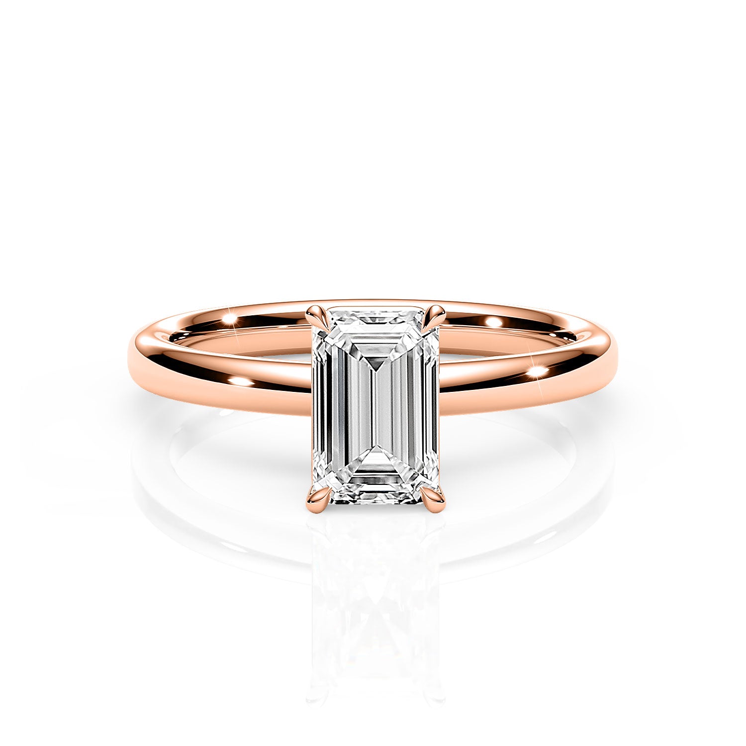 KAYLA | Classic Solitaire Emerald Cut Diamond Ring in Rose Gold