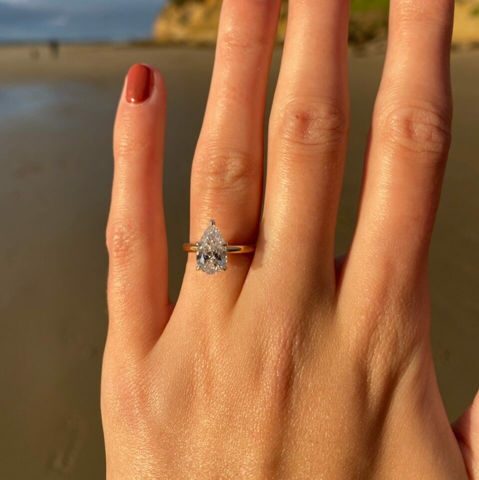 KAYLA | Classic Solitaire Pear Shape Diamond Ring in Yellow & White Gold