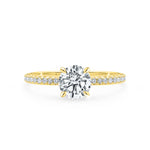 KIMBERLY | French Pavé Solitaire Round Diamond Ring in Yellow Gold