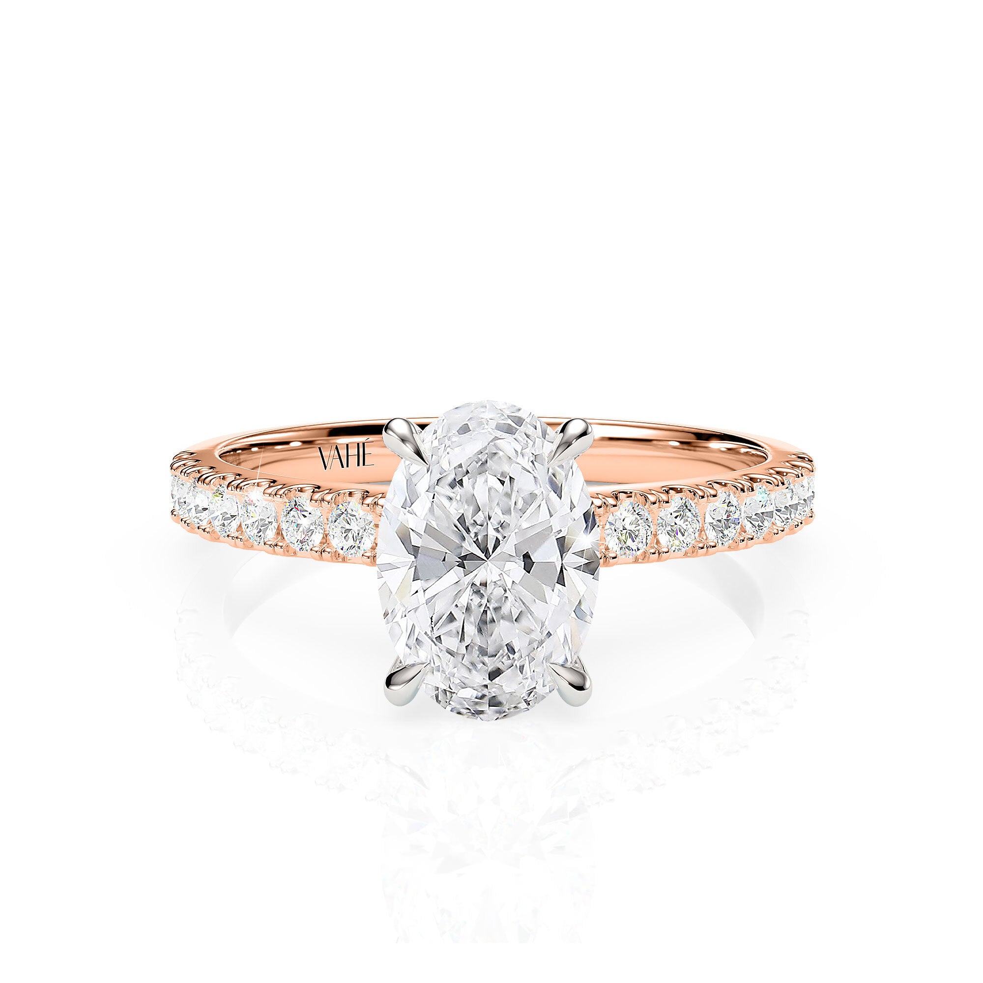LUNA | Hidden Halo Oval Shape Diamond Ring in Rose & White Gold