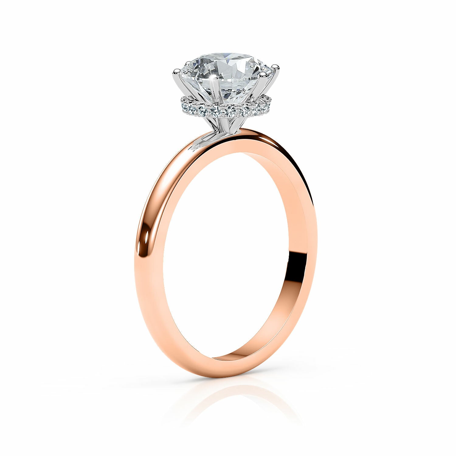 MARY | Hidden Halo Round Brilliant Diamond Ring in Rose & White Gold