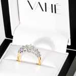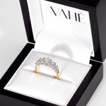 A classic five stone ring remodelled with a fresh two-tone look. The top section is crafted in 18ct white gold to highlight the diamonds, while the band is made in 18ct yellow gold for a timeless contrast. A clean, elegant update that keeps the original sentiment but adds a modern edge.