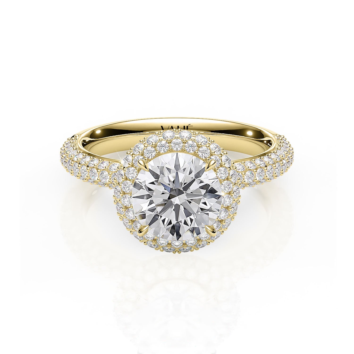 ROSE | Triple Row Pavé Round Brilliant Diamond Ring in Yellow Gold