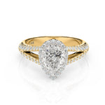 SCARLETT | Scalloped Pavé Split Shoulder Pear Shape Ring in Yellow & White Gold